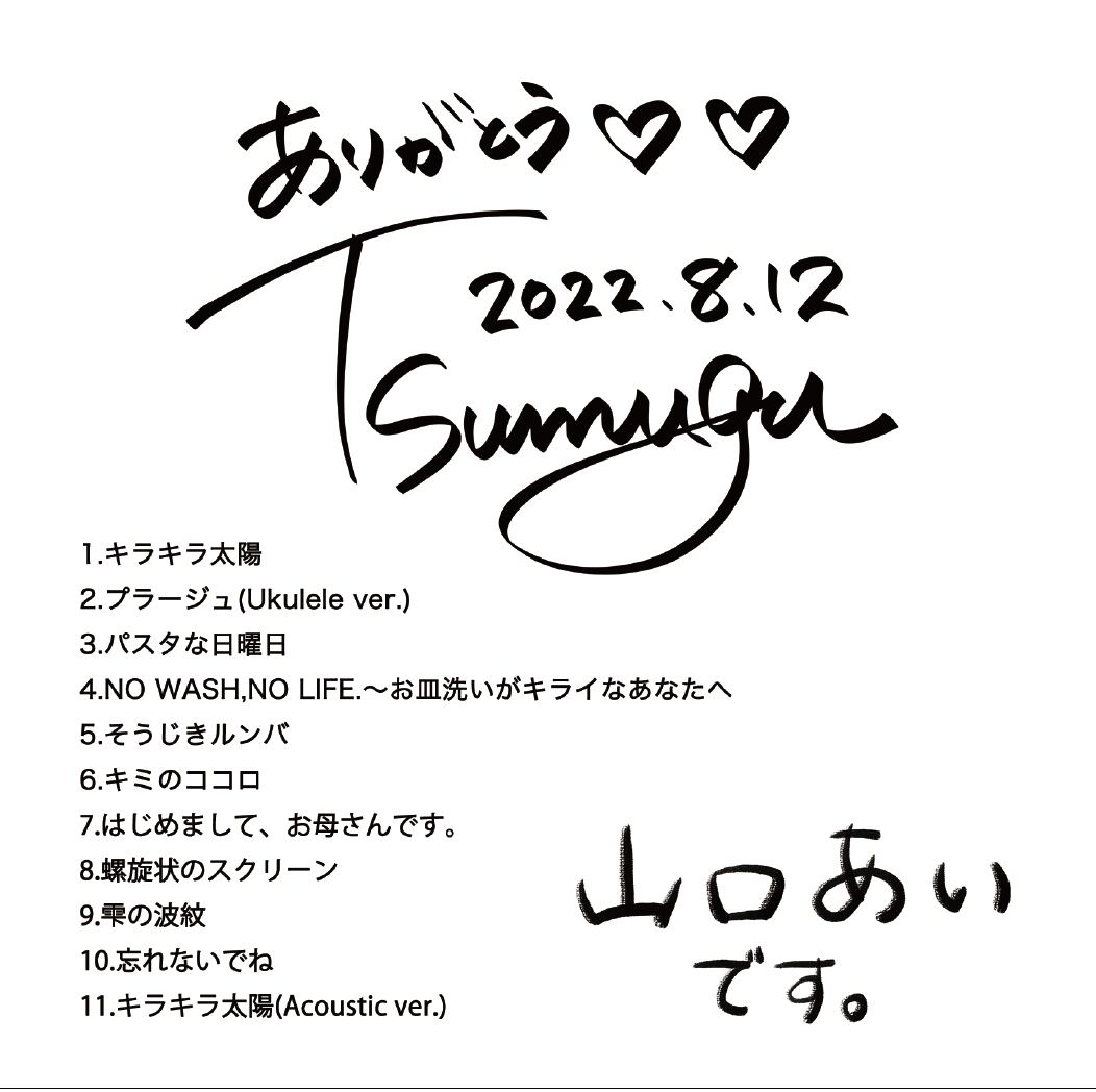 2022年8月12日のライブで限定販売だった山口あいオリジナル曲11曲入りが1枚と、夫婦ユニット君彩りLOVER3曲入りCDの2枚セットです。送料込みとなっております。 サインご希望の方はお名前表記を備考欄にお願いいたします。